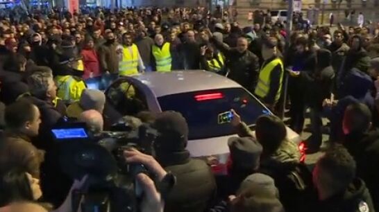 Los manifestantes han golpeado el turismo VTC que conducía por la Via Laietana, que ha terminado con cristales rotos, el retrovisor arrancado y varias abolladuras.