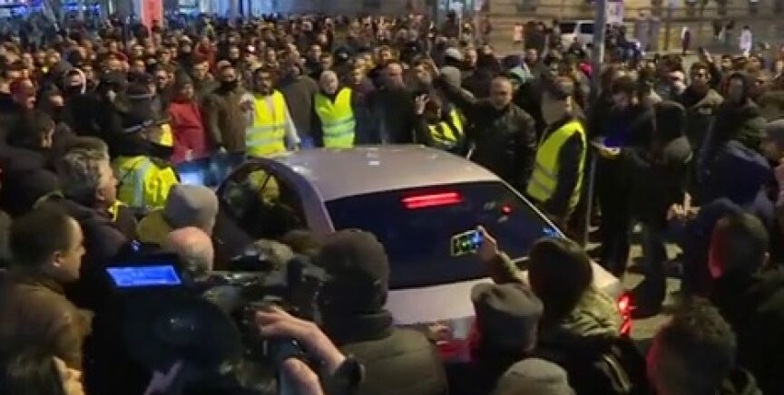 Tensión en el centro de Barcelona por la huelga del sector del taxi, una tensión que también ha afectado a los medios de comunicación, como se ve en el vídeo. En total, hay siete detenidos por daños y desórdenes.