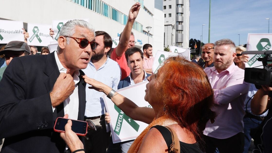 Allí han coincidido la asociación cristiana que puso la denuncia, apoyada por miembros de Vox, y varios colectivos feministas. Se han vivido instantes de tensión, especialmente cuando algunos manifestantes se han dirigido a gritos a las mujeres congregadas frente al juzgado, a las que han insultado llamándolas "putas", "guarras" y "fascistas", entre otros.