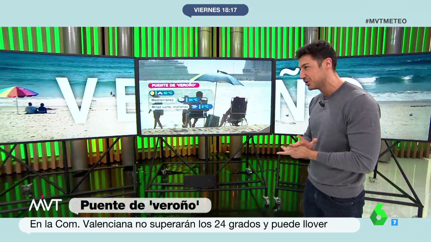 La pequeña excepción la encontraremos en el Mediterráneo, donde habrá temperaturas más bajas -se quedan en los 24 grados-, inferiores de lo que allí corresponde para la época del año. Además, el viento de Levante arrastrará algunas nubes que pueden dejar algunas lluvias, aunque pocas.