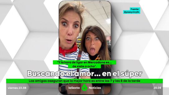 En un cómico vídeo dos amigas aseguran que hay una hora perfecta para ligar en un supermercado. "La hora para ligar en Mercadona es de 7 a 8. ¡Estamos en hora! Aquí estamos las dos con la compra hecha y dando vueltas", cuentan entre risas.