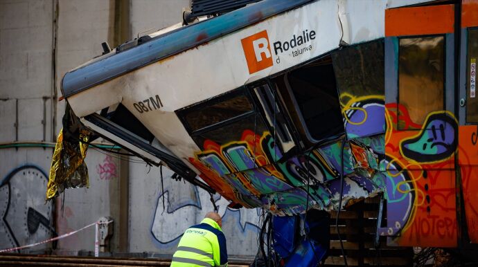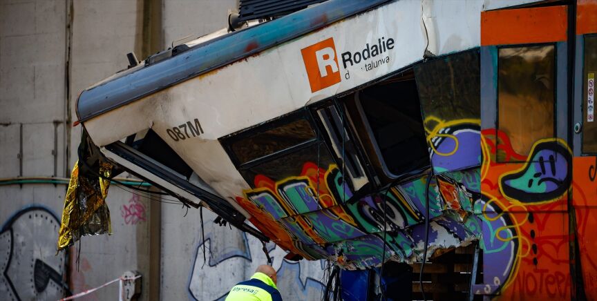 El accidente ferroviario en Gelida, Barcelona, ocurrió cuando un tren de Rodalies chocó con un muro de contención que se desplomó sobre la vía, causando la muerte de un maquinista en prácticas y 37 heridos. La Comisión de Investigación de Accidentes Ferroviarios (CIAF) indicó que el tren tuvo solo cinco segundos para frenar antes de la colisión. El muro, parte de una pérgola de la autopista AP-7, se desplomó debido al empuje del agua acumulada por intensas lluvias. La CIAF, que tiene un año para publicar el informe final, continúa investigando las causas exactas del accidente.