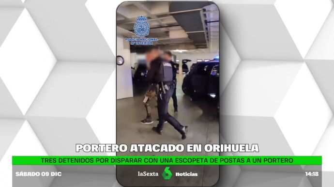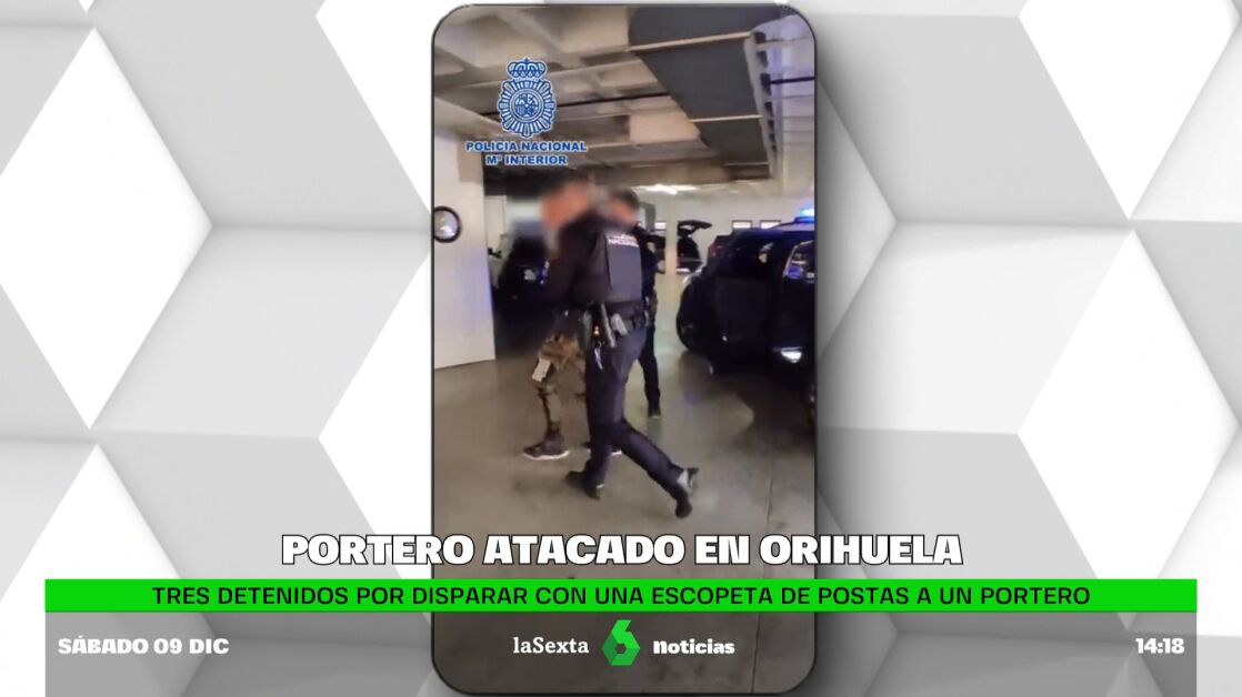 La Policía Nacional ha detenido en Orihuela (Alicante) a tres hombres de entre 41 y 45 años por disparar con una escopeta de postas al portero de una discoteca después de que este no les permitiera acceder al local. La víctima permanece ingresada en el hospital, con heridas leves en extremidades inferiores, aunque está fuera de peligro.