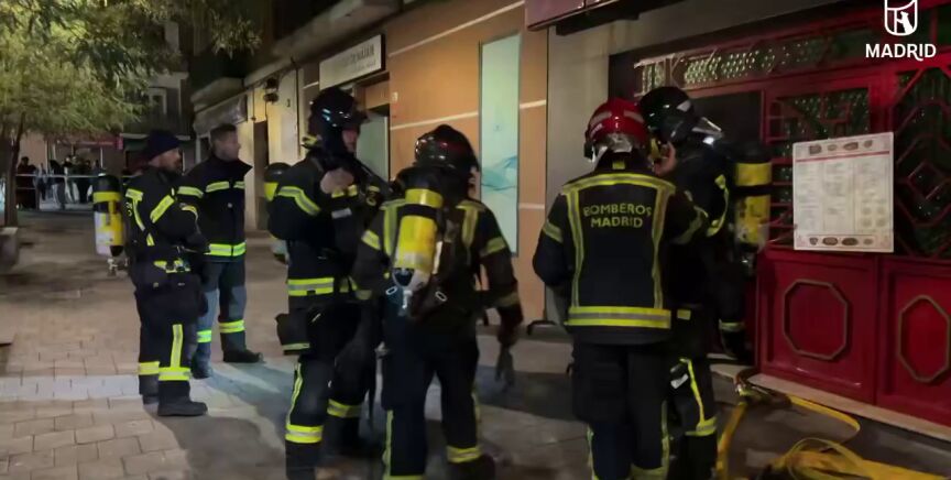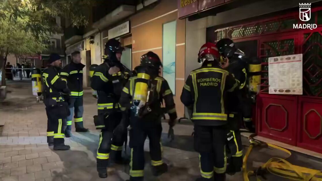 Los Bomberos del Ayuntamiento de Madrid sofocaron el incendio originado después de la explosión en la cocina del local.