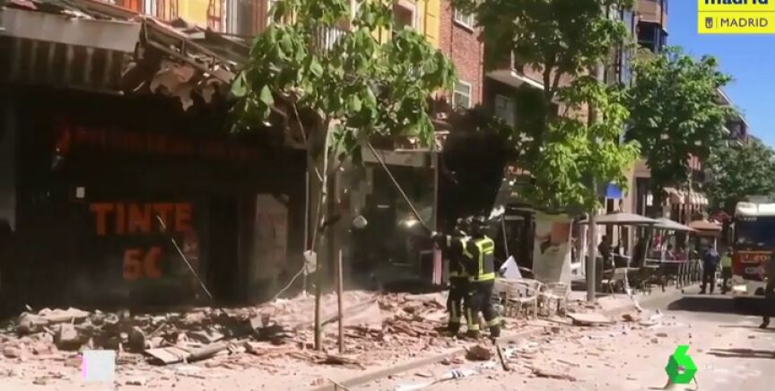 Una cornisa de diez metros se ha derrumbado en un bloque de cuatro plantas en Carabanchel, Madrid. Tres personas han resultado heridas leves en la cabeza por la caída de cascotes y otras ocho han sido atendidas por crisis de ansiedad.