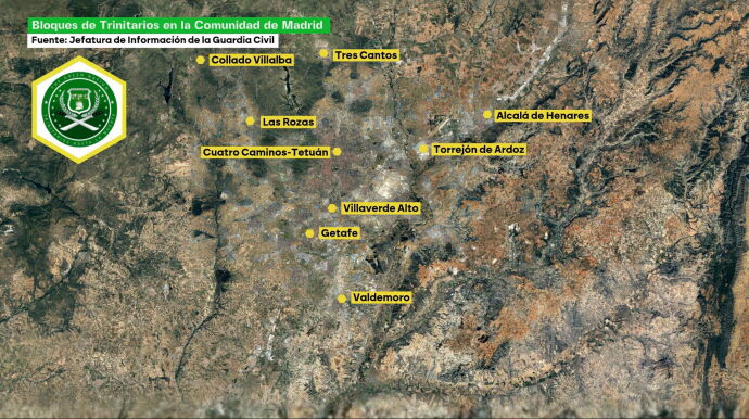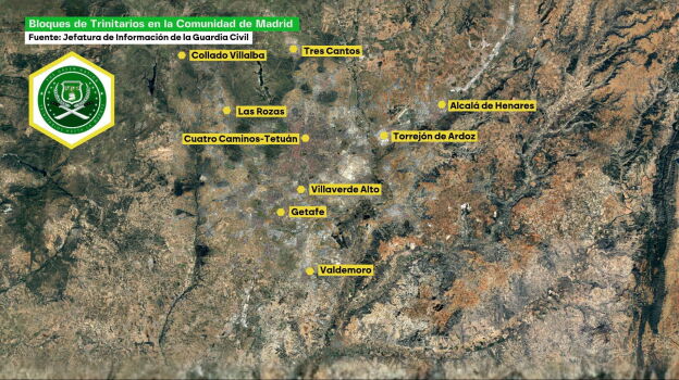 Los detalles La Guardia Civil ya tiene localizados bloques activos de los Trinitarios en al menos diez zonas de la Comunidad de Madrid, y también han detectado su presencia en Cataluña, el País Vasco y otras regiones.