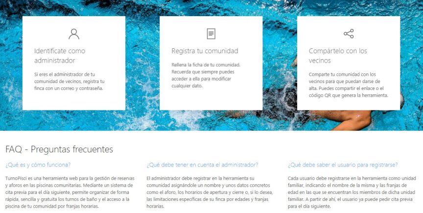 TurnoPisci es la herramienta web para la gestión de reservas y el control de aforos en las piscinas comunitarias a raíz de la nueva normativa del Ministerio de Sanidad.