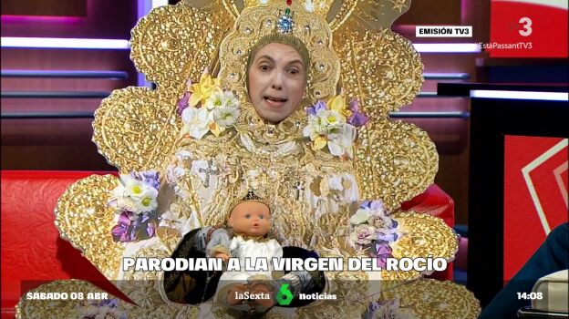 Los humoristas catalanes Jair Domínguez y Toni Soler han avivado la polémica en redes sociales al burlarse de la Virgen del Rocío en el programa de la televisión autonómica catalana Està Passant. El programa en cuestión se remonta al 4 de abril, cuando ambos ironizaron sobre la virgen, representada por una actriz que simulaba un forzado acento andaluz.