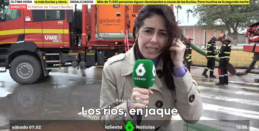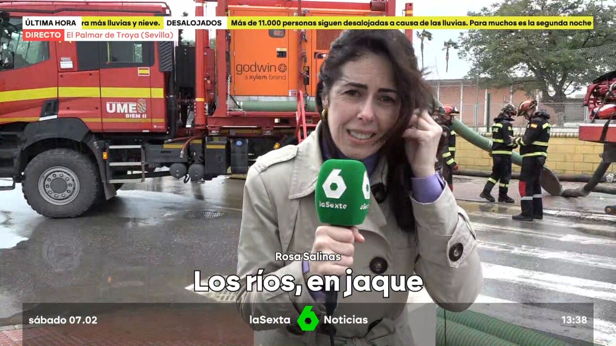 El contexto La UME lleva desde la madrugada evacuando zonas residenciales del Palmar de Troya, después de que los vecinos empezaran a ver cómo crecía el caudal del río. "Eso era como una playa, no se podía cruzar ni se podía andar", explica una vecina a laSexta.