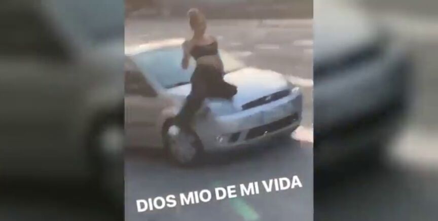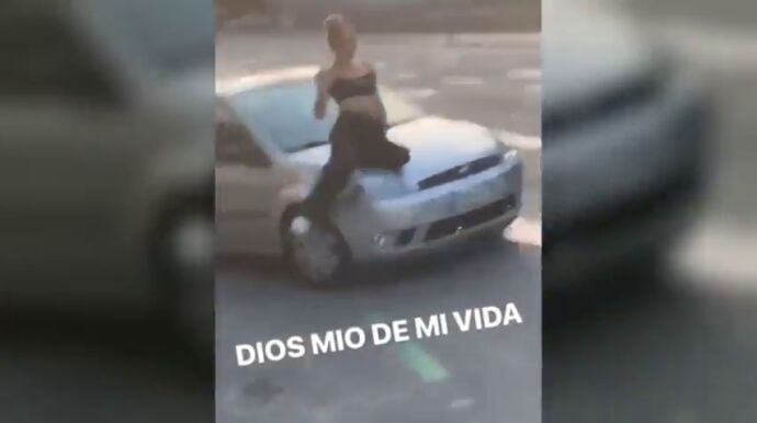 Un joven de 21 años pasea durante unos minutos a una chica subida en el capó de un coche. Entre risas y gritos, la chica y el resto de espectadores se divierten ajenos a lo peligroso de la maniobra.