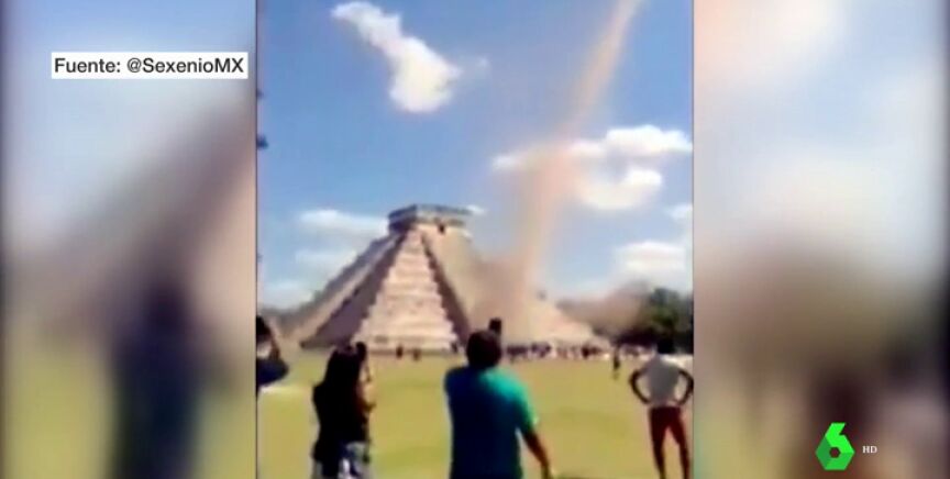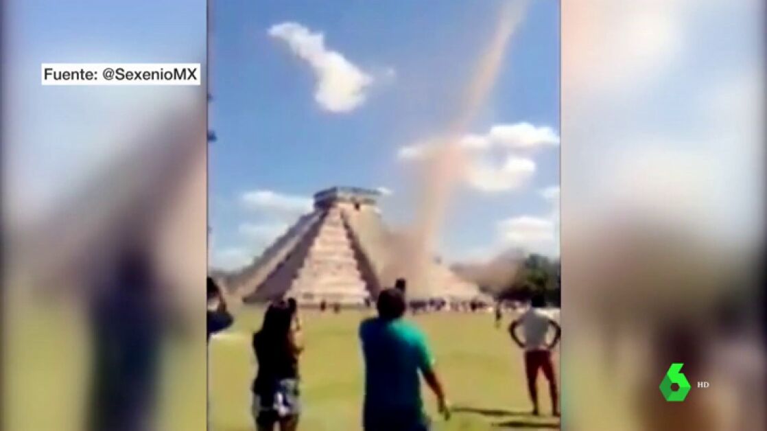 "Kukulcán está enojado", dijo un turista. Pensaban que era el enfado del dios maya de la serpiente de plumas, pero en realidad era un torbellino que se formaba tras la pirámide de Kukulcán en Chichén Itzá (México). No debió de asustar a los turistas, porque ninguno dejó de grabar el inusual fenómeno con el móvil.
