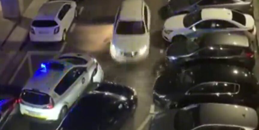 En el vídeo que acompaña estas líneas, grabado por varios vecinos de la zona, se puede observar como el ahora detenido avanza con su vehículo hasta el final de un callejón y comienza a dar marcha atrás a gran velocidad para golpear al coche de la Policía que le cortaba el paso.