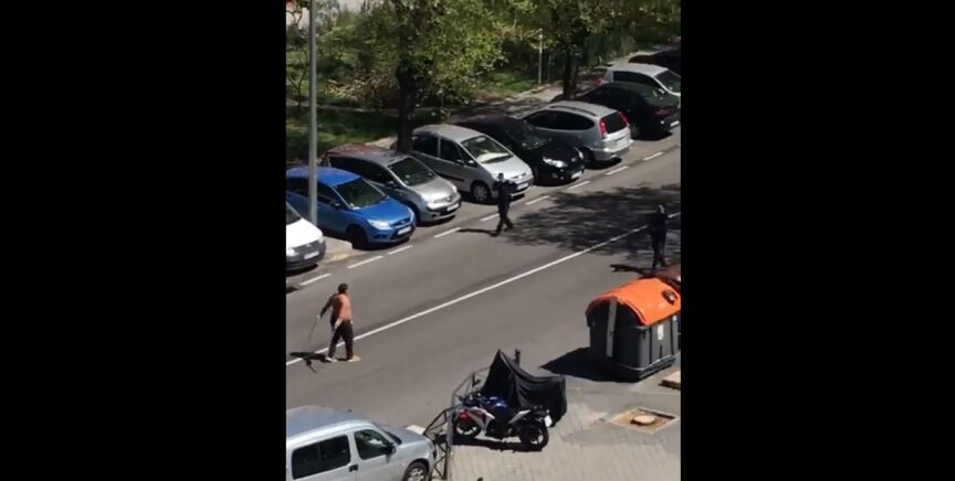 Los hechos ocurrieron sobre las 13.45 horas en la calle Hacienda de Pavones. Una unidad del Samur-Protección Civil solicitó apoyo policial para el control de un hombre que decía estar contagiado de Covid-19 y estaba muy agresivo. Cuando llegó un indicativo policial, este individuo intentó agredirles con dos catanas.