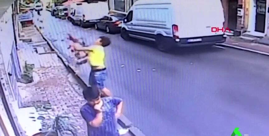 Un joven ha salvado in extremis a una niña de dos años que acababa de caer de un segundo piso en Estambul.