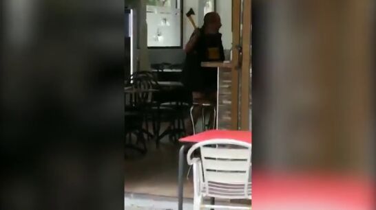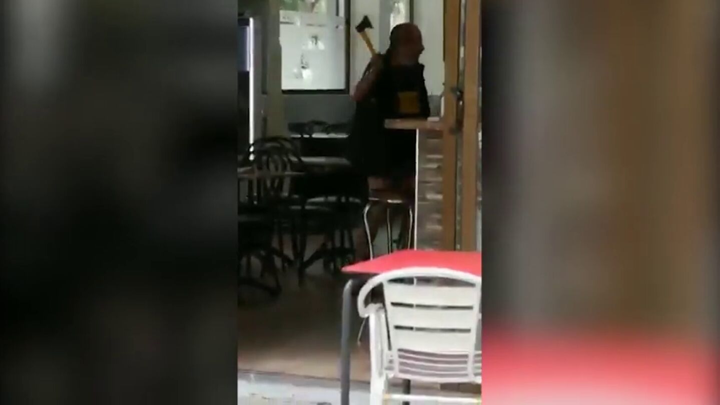 El momento en el que un mosso fuera de servicio reduce a un hombre con un hacha en un bar de Barcelona