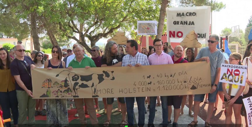 "Macrogranja no en nuestras narices". Es el mensaje que han exhibido en pancartas los vecinos de La Pobla de Vallbona, en Valencia, durante una concentración en protesta contra la ampliación de una vaquería.
