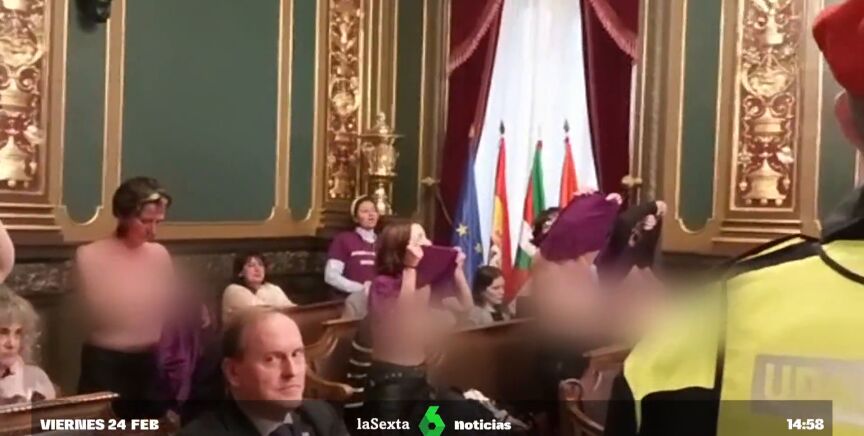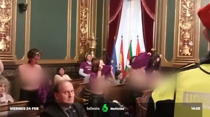 Varias mujeres se desnudan en el pleno del Ayuntamiento de Bilbao como protesta laboral