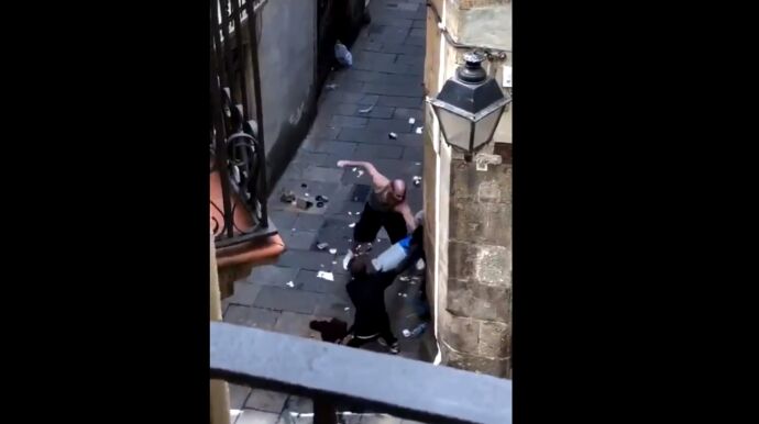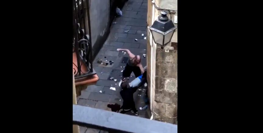 Un nuevo vídeo compartido por Helpers BCN y viralizado a través de las redes muestra un nuevo episodio violento en plena calle en Barcelona, concretamente en la calle de la Leona del centro de la ciudad.