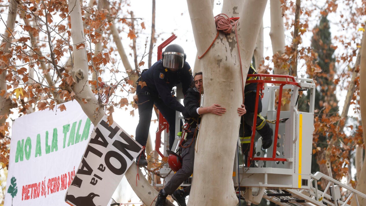 Vecinos del entorno de Madrid Río y activistas medioambientales habían empezado a concentrarse en el Paseo de Yeserías desde primera hora ante el inicio de las talas, un total de 523 en los distintos puntos por las obras de la línea 11 de Metro, promovidas por la Comunidad de Madrid. Vecinos y vecinas de Arganzuela, junto al colectivo Rebelión o Extinción, se han manifestado con pancartas en las que se podía leer 'No a la tala' y 'Metro sí pero no así' cuando han comprobado la llegada al parque de camiones y operarios, quienes han iniciado el arranque de las talas. La Policía ha desalojado a los activistas que se habían abrazado a los árboles para impedir su tala y mantiene un fuerte despliegue para evitar más incidentes en la zona.
