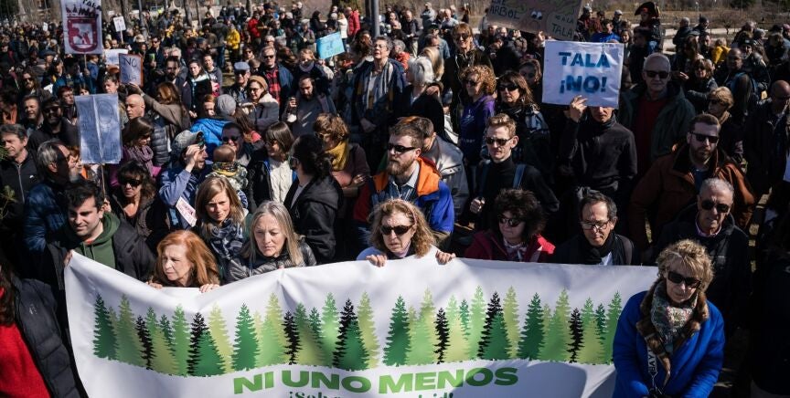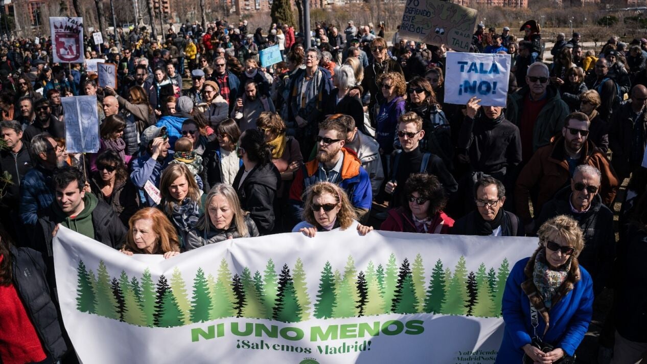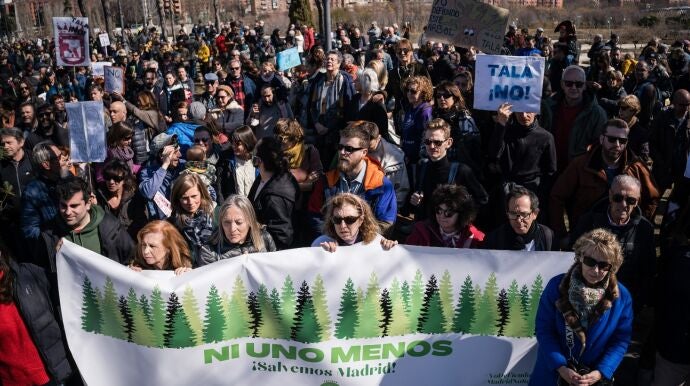 "No a la tala. No a las talas en el Parque de Comillas, no al trasplante de árboles adultos, no a la estación en el Parque de Arganzuela (Madrid Río)", han denunciado esta mañana desde la convocatoria. Los denunciantes creen que el plan de obras afectaría a cientos de árboles, algunos de ellos de más de 50 años, que aún siendo trasplantados, como proponen desde el consistorio, estarían condenados a la muerte.