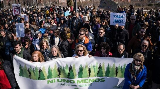 De ahí que se hayan concentrado una vez más para reclamar al alcalde de la capital una ciudad verde. Denuncian que en los últimos cuatro años han desaparecido más de 78.000 árboles. "Pedimos que se paren las obras. Si siguen empeñados en mantener la estación de Metro en el Parque de Madrid Río esos árboles están condenados", ha asegurado desde la concentración la portavoz de la Asociación Verde Imperial, Susana de la Higuera.