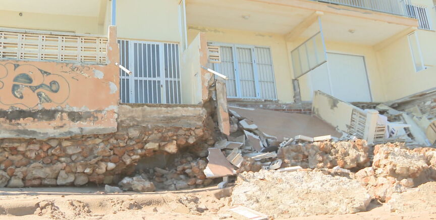 El contexto Tras el paso de la borrasca Harry, tres viviendas de la localidad valenciana se hundieron y cayeron, parcialmente, a la playa. Casi dos meses después, sus dueños siguen pidiendo una solución.