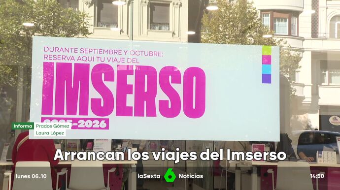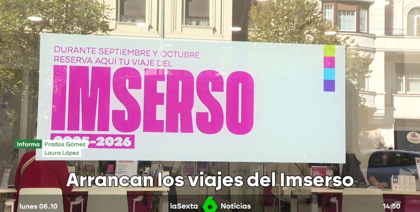 - Lunes 6 de octubre | 09:00h: pueden apuntarse a los viajes del Imserso los pensionistas de Asturias, Cataluña, Castilla-La Mancha, Comunidad Valenciana, Islas Baleares, Canarias, La Rioja, Navarra, País Vasco y Ceuta