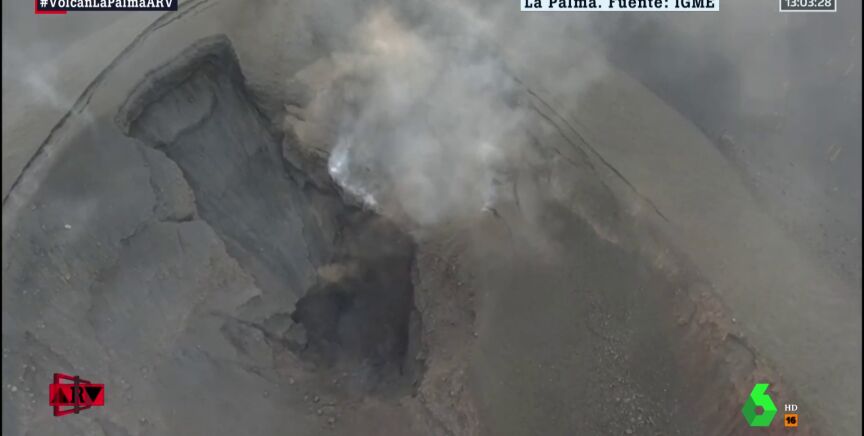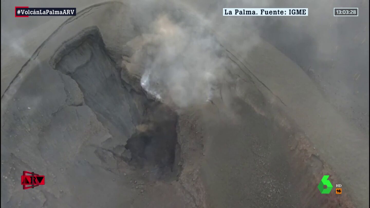 El parón momentáneo de la erupción del volcán de La Palma ha hecho posible que un dron haya grabado el estado del cráter principal. Una imágenes que muestran la magnitud de este fenómeno de la naturaleza. En el vídeo que acompaña estas líneas puedes verlo. Son imágenes del Instituto Geológico y Minero de España.
