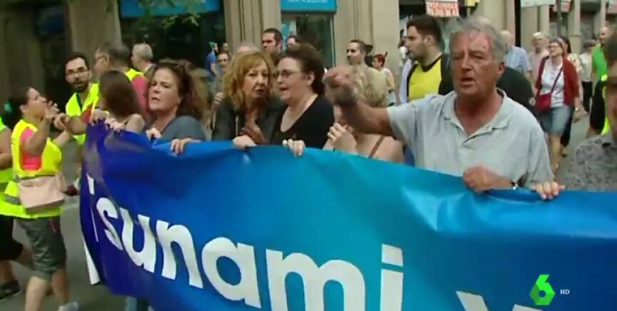 Convocada por la agrupación Tsunami Veinal, en la que se integran colectivos y asociaciones de vecinos de una veintena de barrios de Barcelona, en la protesta también participaba el representante del PP en el ayuntamiento de Barcelona, Josep Bou, a quien los organizadores han pedido que saliera de la misma.