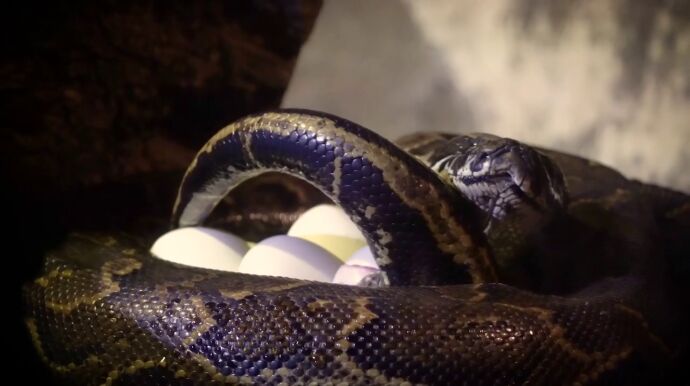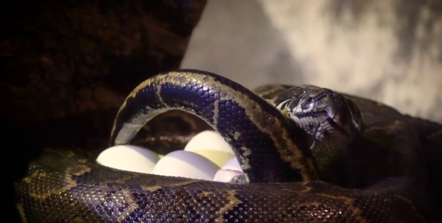 VÍDEO | El parto de una serpiente pitón de Seba: las impactantes imágenes de su peculiar puesta de huevos