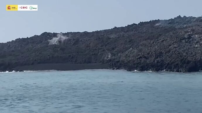 Son imágenes grabadas por Centro Superior de Investigaciones Científicas (CSIC) y que muestra su biólogo Vicente Nogales. Ya existe al menos un arenal en la fajana que se ha formado con la llegada de la lava al mar. Se ha formado por la erosión de las olas sobre el material que se ha depositado y se observan pequeñas fumarolas.