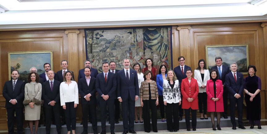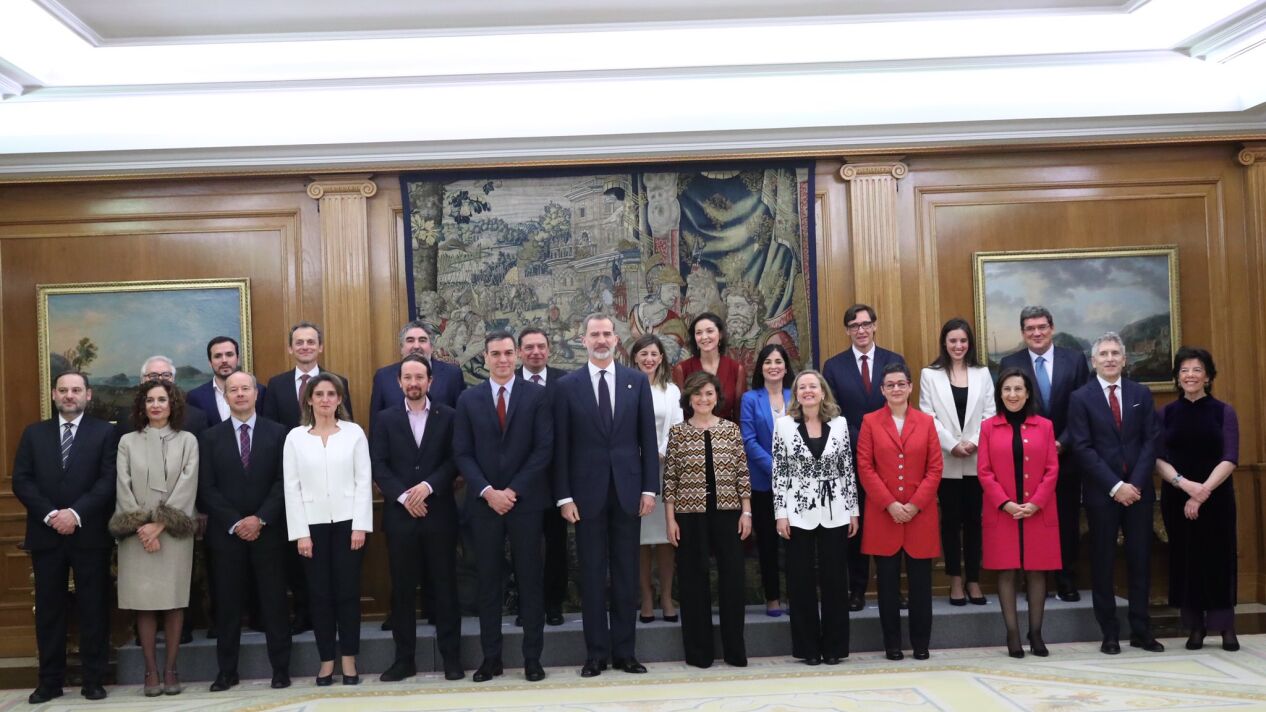 Los 22 integrantes del primer Gobierno de coalición en democracia ya han prometido sus cargos ante el rey. Lo hicieron este lunes en un acto en el Palacio de la Zarzuela, que la Casa Real inmortalizó para, posteriormente, publicar las imágenes en Twitter.