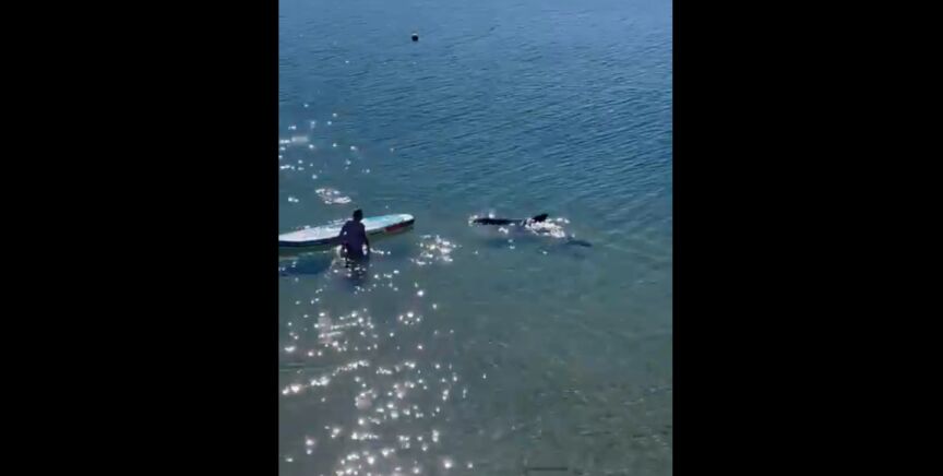 Un delfín ha sido el protagonista de una de las imágenes más llamativas y tiernas de la semana. Sucedió este jueves en Finisterre, en el litoral gallego, y ha generado miles de interacciones en las redes sociales.