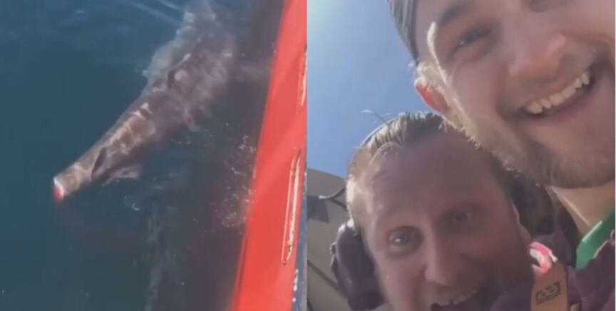 Los dos pescadores se grabaron entre risas atrapando al animal y cortándole la aleta caudal: "Buena suerte tratando de nadar, bastardo".