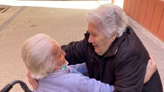 "Se han visto abajo y se han puesto muy felices", ha relatado @importansiero, que ha culminado su relato con una imagen de las dos ancianas abrazándose a pesar de tener una silla de ruedas de por medio.