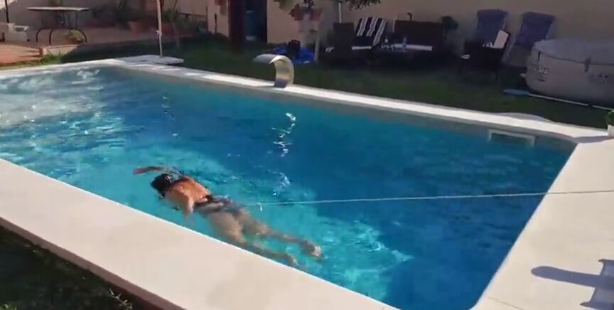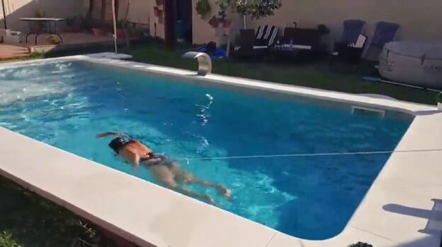 La madre de Miguel no podía hacer largos en su piscina porque era muy pequeña, pero la familia solucionó el problema con la ayuda de una cuerda e ingenio, y ya se ha hecho viral en Twitter.