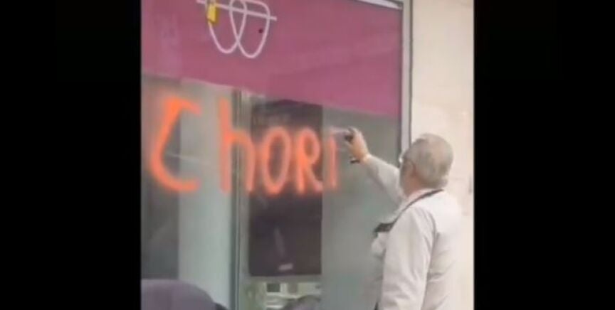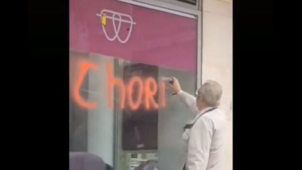"Chorizos". Es la contundente acusación que un abuelo grafiteó en una clínica Dentix de Barcelona, después de que su esposa sufriera una presunta estafa a manos de la cadena.