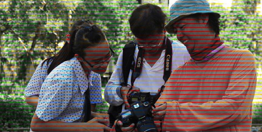 El efecto se consigue aplicando una cuadrícula de colores encima de la instantánea en escalas de grises, lo que confunde a nuestro cerebro.