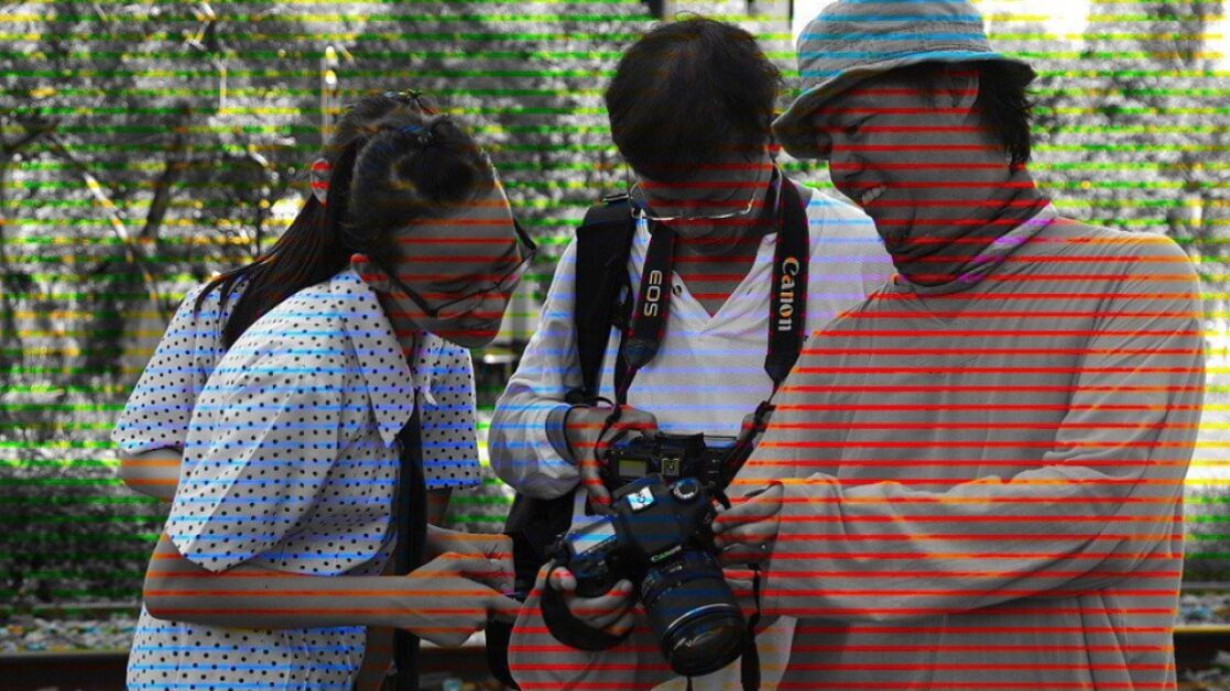 Este efecto se consigue aplicando una cuadrícula de diferentes colores encima de la instantánea, lo que confunde a nuestro cerebro y nos hace creer que están a color cada uno de sus elementos.