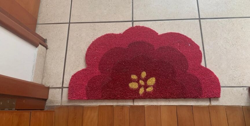 El felpudo en cuestión es una flor en tonos rojizos y, por lo visto, ha resultado ofensivo para los vecinos de este joven.