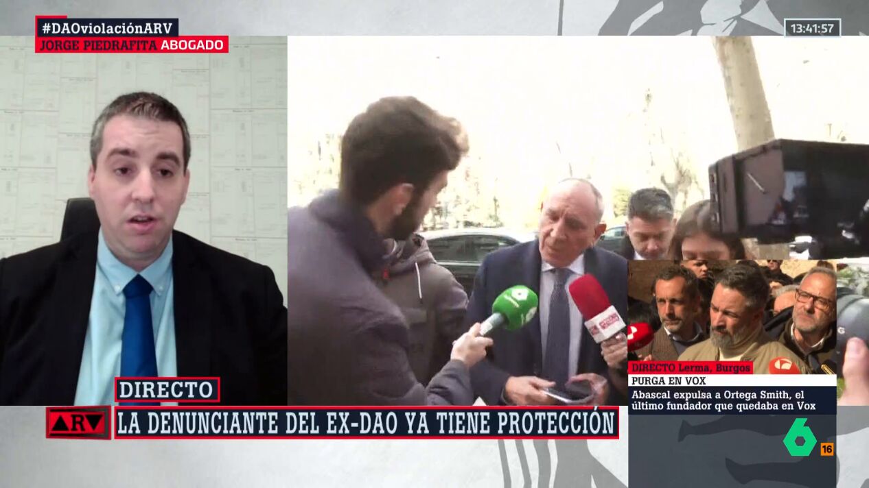 Jorge Piedrafita, abogado de la víctima de la presunta agresión sexual por parte del exDAO, ha denunciado en Al Rojo Vivo que su cliente está sufriendo una "auténtica cacería", con "llamadas, mensajes, todo tipo de bulos, mentiras y desacreditaciones". "Está todo dirigido a dañarla y desacreditarla lo máximo posible antes de la declaración judicial", ha señalado.