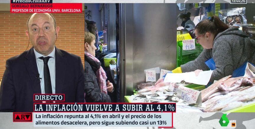 El economista Gonzalo Bernardos ha valorado positivamente la bajada de la inflación de los alimentos, que han pasado del 16,5% al 12,9%. "Sigue siendo una gran inflación, pero esa bajada de 3,5 puntos es la mayor de toda la historia. Si la sequía no hace que tengamos escasez de alimentos, estas bajadas van a continuar", ha dicho.