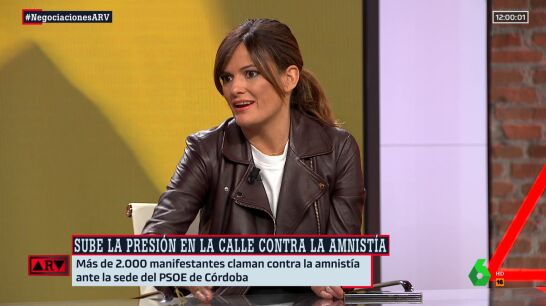 La periodista analiza en Al Rojo Vivo las manifestaciones en la puerta de la sede del PSOE, en la calle Ferraz, y sostiene que "el PP tiene que hacer la oposición en las instituciones y no dejarse llevar por Vox".