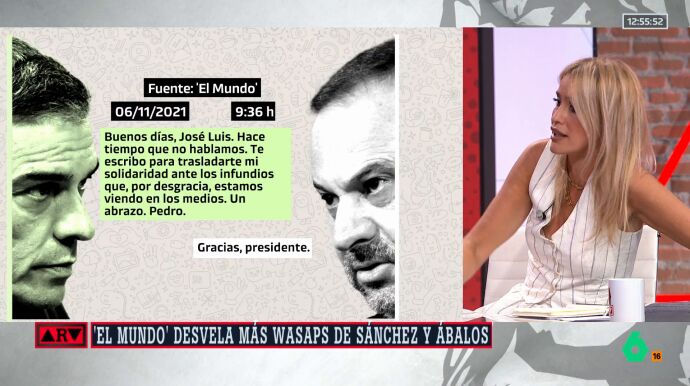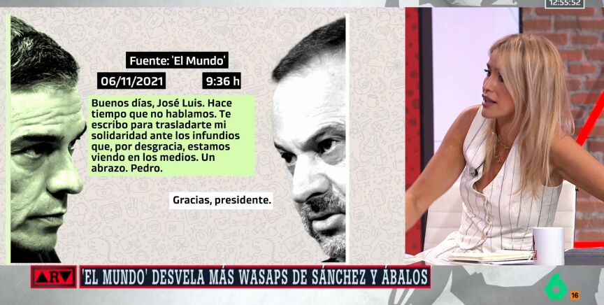 La sindicalista Afra Blanco realiza una primera intervención en Al Rojo Vivo tras conocer los mensajes entre Pedro Sánchez y José Luis Ábalos, entre los años 2020 y 2021, revelados por El Mundo. En ellos se muestra algo que ya sabíamos por los medios: la mala relación de Sánchez con sus barones territoriales críticos como Emiliano García Page o Javier Lambán.