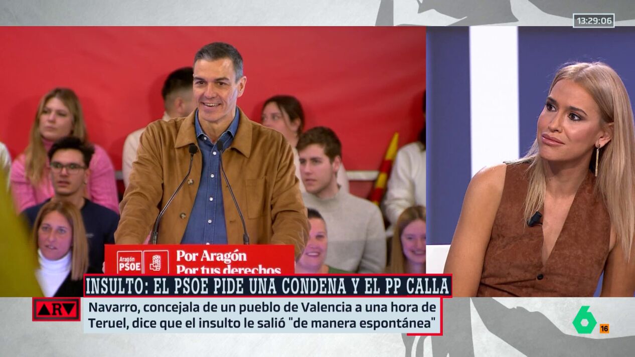 La sindicalista Afra Blanco reacciona al insulto ('hijo de puta') que una concejala del PP profirió al presidente del Gobierno durante un mitin socialista en Teruel, con la candidata, Pilar Alegría, donde, además, se coló. En el vídeo, los detalles.