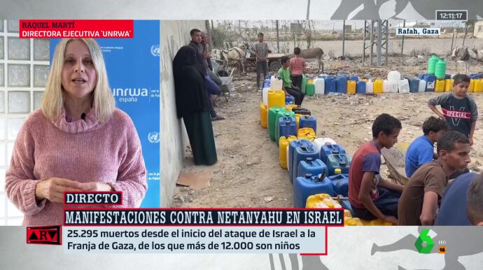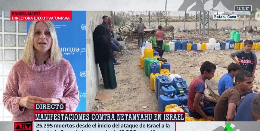 Raquel Martí, directora ejecutiva de UNRWA, asegura que cuatro de cada cinco personas que pasan hambre en el mundo se encuentran en Gaza. Además, las enfermedades comienzan a propagarse debido a las duras condiciones en las que viven.