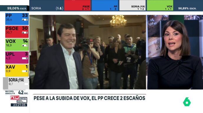 Ainhoa Martínez ha analizado el resultado de las elecciones en Castilla y León, donde Fernández Mañueco ha obtenido la victoria con 33 procuradores ante un PSOE que ha subido dos escaños con Carlos Martínez. "Es una buena noche para el bipartidismo", ha afirmado.