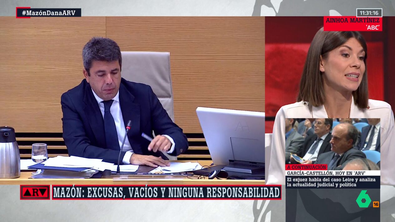 "Los diputados tenían una ardua tarea que era ir desbrozando entre tantas mentiras algún dato nuevo y salieron dos", añade y analiza Martínez. Uno de ellos, indica, fue el que Mazón, a partir de las 15:00, prescindiera de los escoltas, algo "muy significativo", ya que "esto solo lo hacen los cargos públicos cuando ya están de vacaciones".