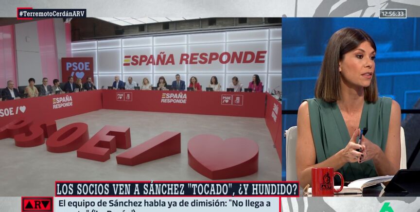 La periodista ha señalado que el PSOE sigue sin "reaccionar" tras la información que ha salido a la luz sobre Santos Cerdán. "Viven con ansiedad cuál va a ser la próxima filtración", ha asegurado en Al Rojo Vivo.
