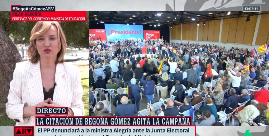 Pilar Alegría ha respondido en Al Rojo Vivo a estas acusaciones del PP, confesando que se ha enterado de la denuncia a través de los medios de comunicación. "Cuando la conozca, trasladaré mi respuesta", ha señalado.